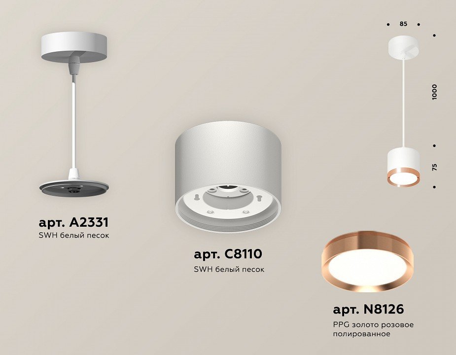 Компоненты, входящие в комплекткрепеж подвесной d85. корпус накладной d85. насадка передняя d85