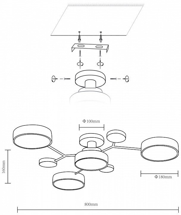 Основная форма светильника (Для подвесных люстр, потолочных люстр и подвесных светильников)Несколько плафонов