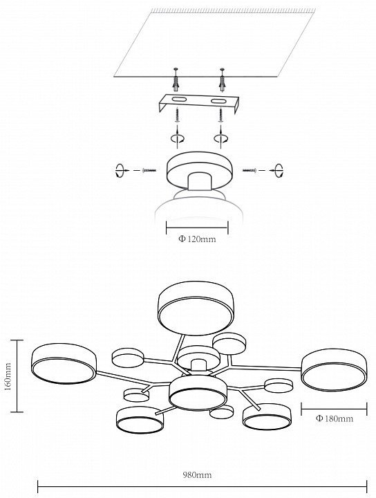 Основная форма светильника (Для подвесных люстр, потолочных люстр и подвесных светильников)Без плафонов