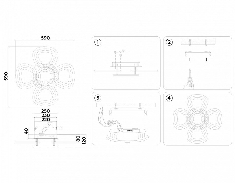 Основная форма светильника (Для подвесных люстр, потолочных люстр и подвесных светильников)Без плафонов