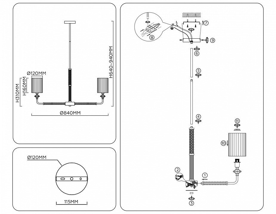 Точная форма - Несколько плафонов (Для подвесных люстр, потолочных люстр и подвесных светильников)Плафоны из центра вверх