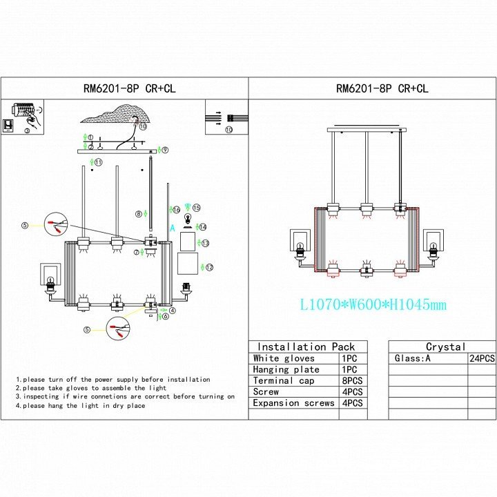 Станьте первым, кто оставит отзыв о товаре Потолочная люстра iLamp King RM6201-8P CR+CL