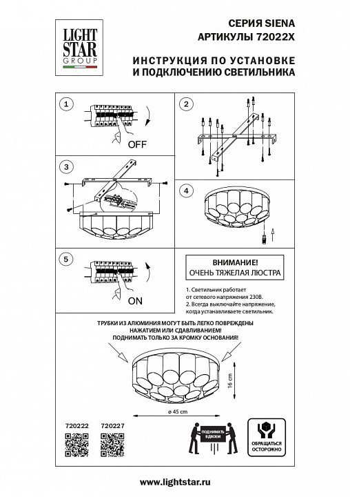 Станьте первым, кто оставит отзыв о товаре Потолочная люстра Lightstar Siena 720227