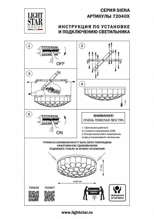 Станьте первым, кто оставит отзыв о товаре Потолочная люстра Lightstar Siena 720402