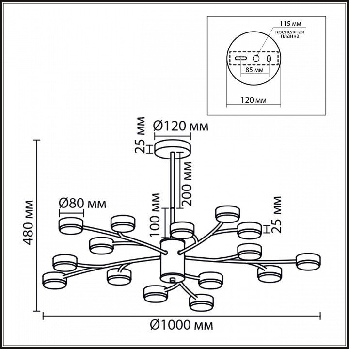 Основная форма светильника (Для подвесных люстр, потолочных люстр и подвесных светильников)Несколько плафонов