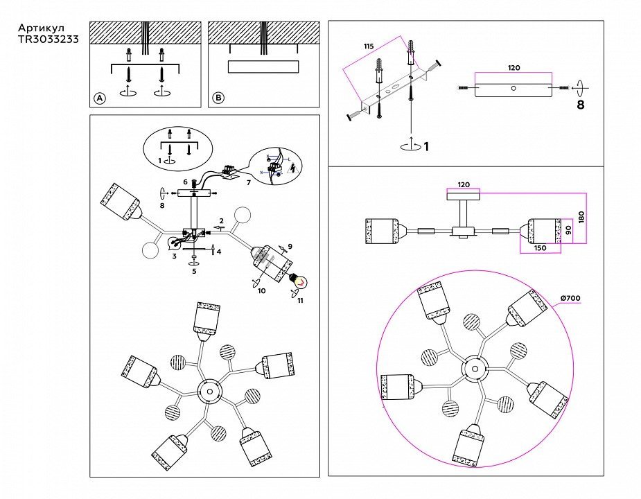 Основная форма светильника (Для подвесных люстр, потолочных люстр и подвесных светильников)Несколько плафонов