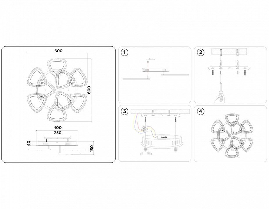 Основная форма светильника (Для подвесных люстр, потолочных люстр и подвесных светильников)Без плафонов