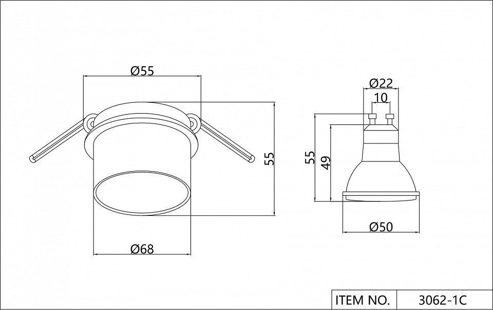 Диаметр врезного отверстия, мм55