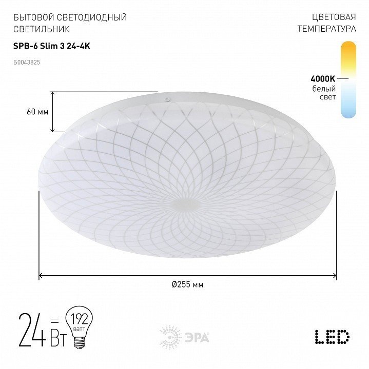 Станьте первым, кто оставит отзыв о товаре Потолочный светодиодный светильник ЭРА SPB-6-slim 3-24-4K