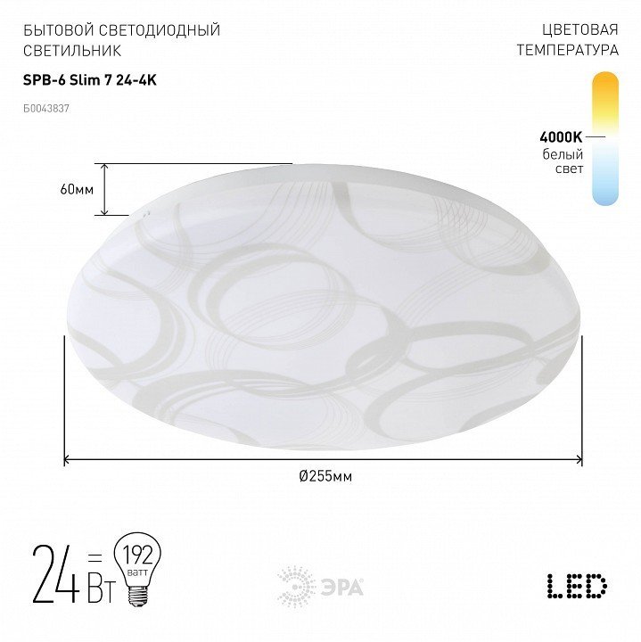 Станьте первым, кто оставит отзыв о товаре Потолочный светодиодный светильник ЭРА SPB-6-slim 7-24-4K
