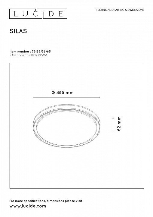 Потолочный светодиодный светильник Lucide Silas 79183/36/65