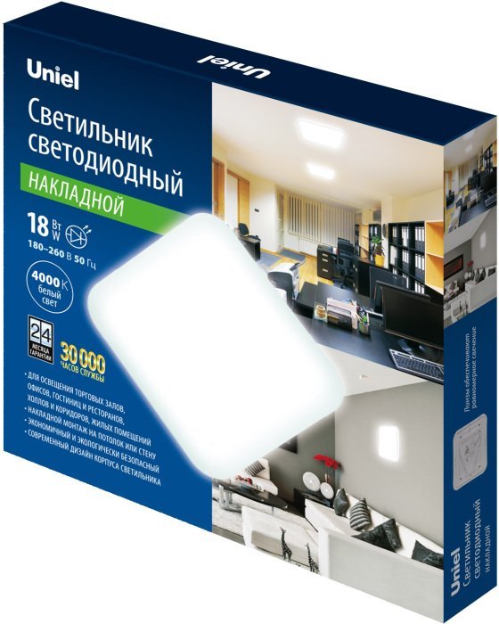 Станьте первым, кто оставит отзыв о товаре Потолочный светодиодный светильник Uniel ULI-B322 18W/4000K/27 Quatro-2 UL-00008888