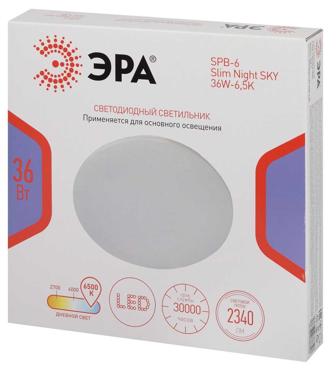 Светильник потолочный светодиодный ЭРА Классик без ДУ SPB-6 WH 36W-6,5K Slim Night SKY Б0069783