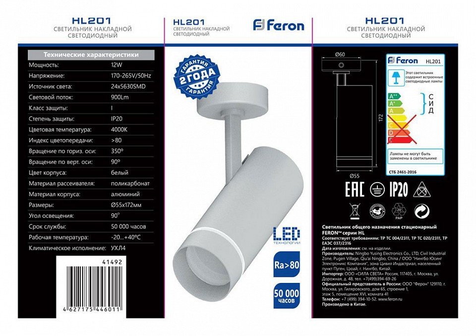Станьте первым, кто оставит отзыв о товаре Светодиодный спот Feron HL201 41492