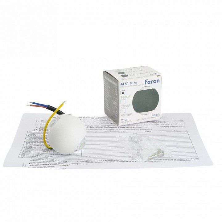 Светодиодный светильник стационарный Feron AL51 2*1W 4000K белый 51128