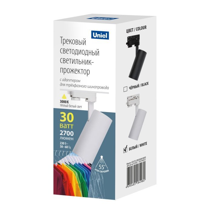 Станьте первым, кто оставит отзыв о товаре Трековый светодиодный светильник Uniel ULB-T55-30W/3000K White UL-00011207