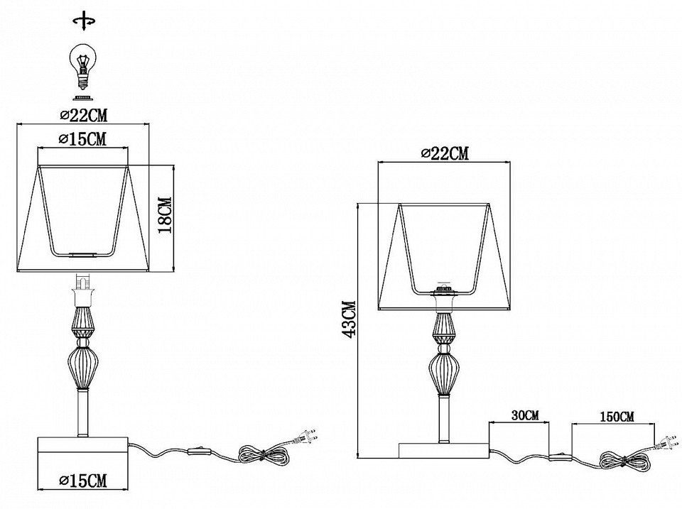 Наличие выключателя, диммера или пульта ДУвыключатель на проводе, выключатель