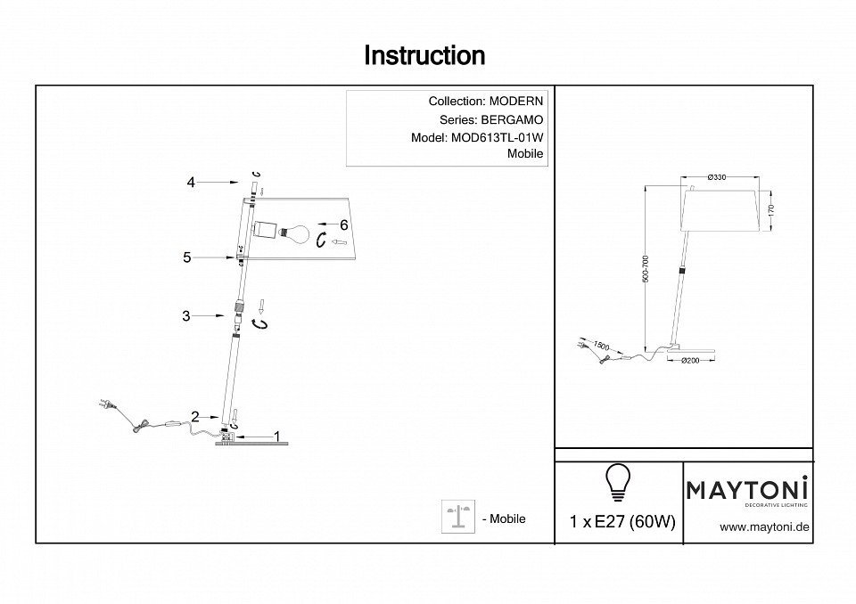 Станьте первым, кто оставит отзыв о товаре Настольная лампа Maytoni Bergamo MOD613TL-01W