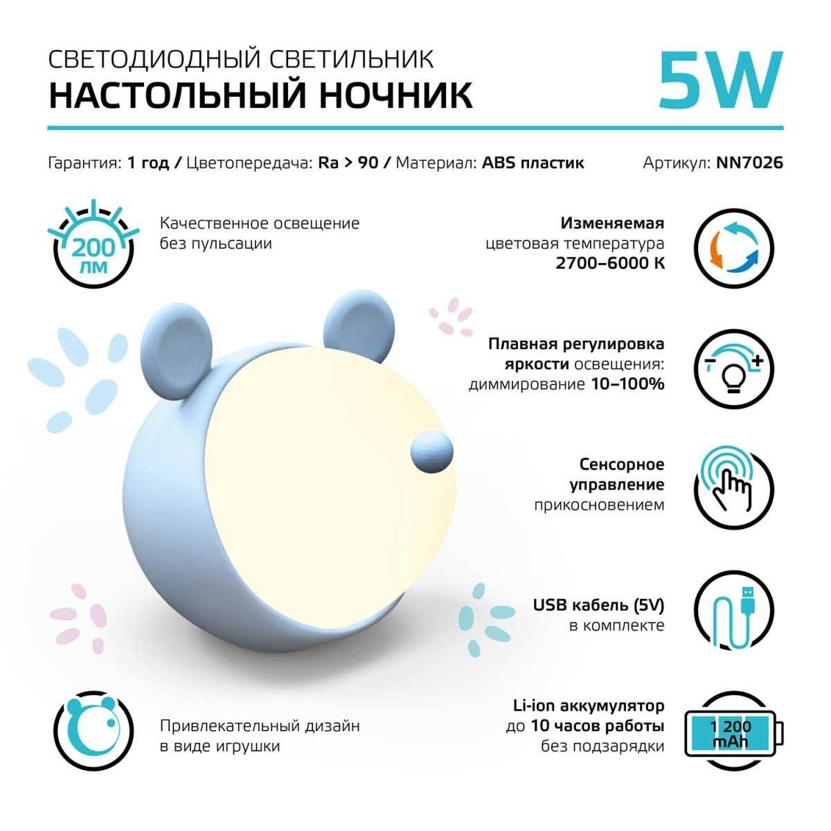 Настольный светодиодный детский ночник Gauss NN7026