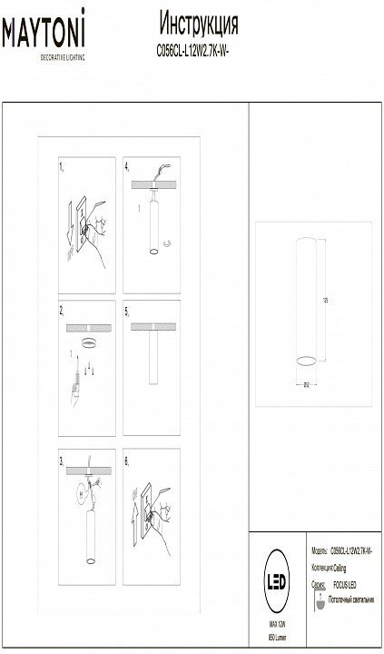 Станьте первым, кто оставит отзыв о товаре Накладной светильник Maytoni Technical FOCUS LED C056CL-L12W2.7K-W-PT