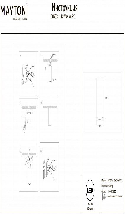 Станьте первым, кто оставит отзыв о товаре Накладной светильник Maytoni Technical FOCUS LED C056CL-L12W3K-W-PT