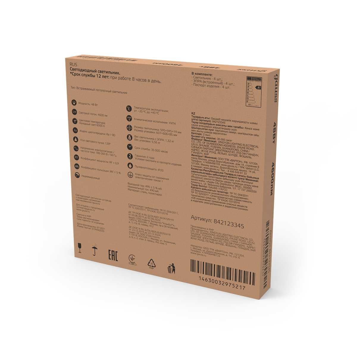 Станьте первым, кто оставит отзыв о товаре Потолочный светодиодный светильник Gauss 842123345