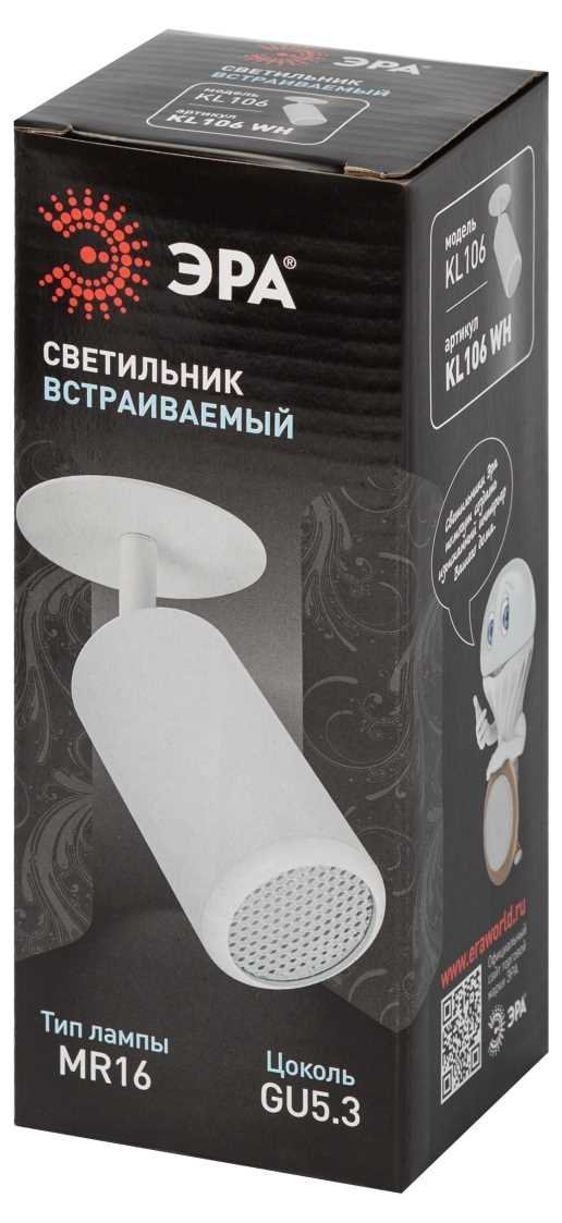 Станьте первым, кто оставит отзыв о товаре Светильник встраиваемый алюминиевый ЭРА KL106 WH под лампу MR16 GU10 белый матовый Б0061540