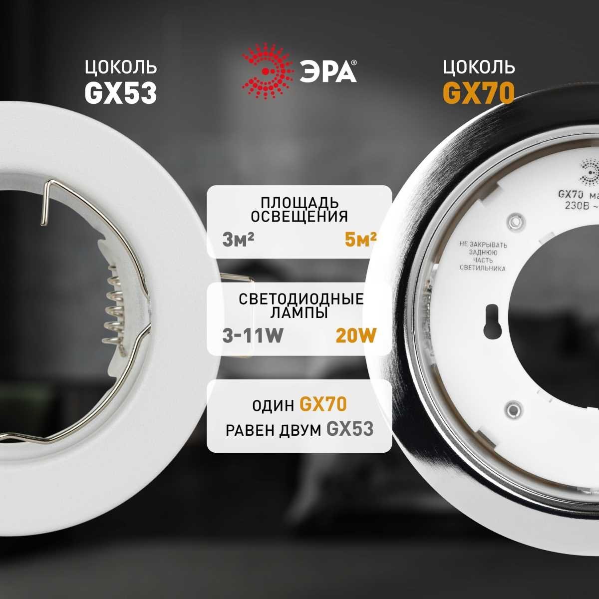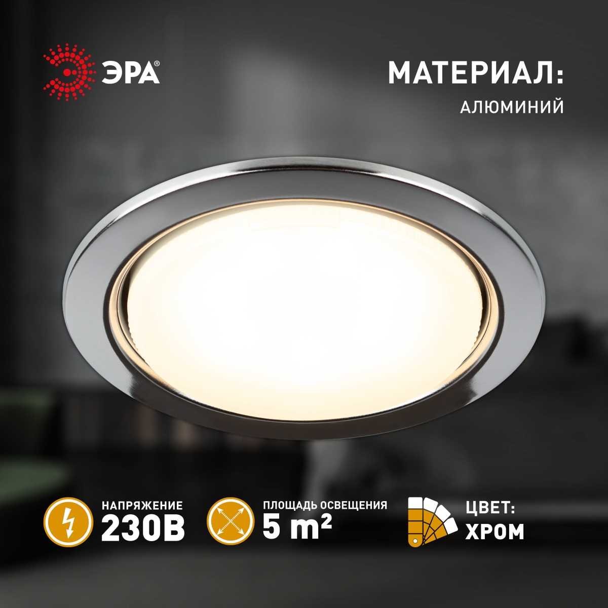 Станьте первым, кто оставит отзыв о товаре Светильник встраиваемый ЭРА ST70 CH под лампу GX70 хром Б0066257