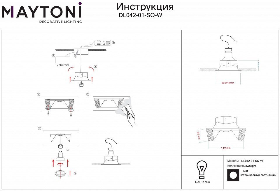 Станьте первым, кто оставит отзыв о товаре Точечный светильник Maytoni Dot DL042-01-SQ-W