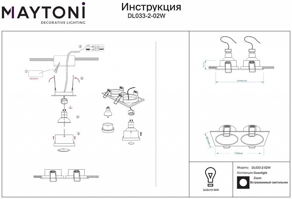 Станьте первым, кто оставит отзыв о товаре Точечный светильник Maytoni Zoom DL033-2-02W