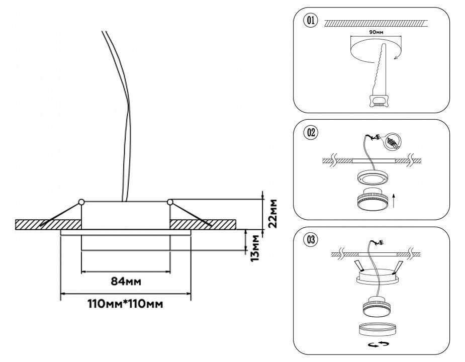 Диаметр врезного отверстия, мм90