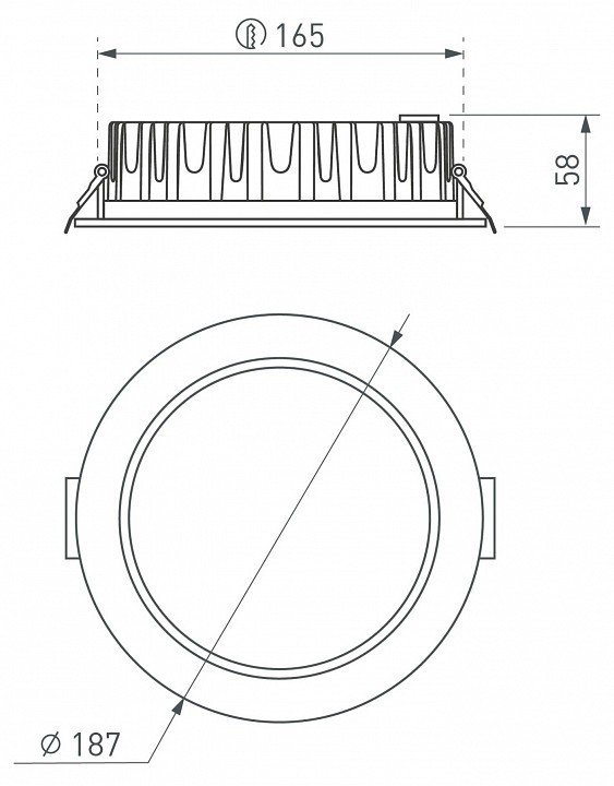 Диаметр врезного отверстия, ммd165