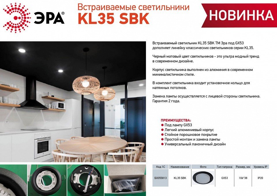 Станьте первым, кто оставит отзыв о товаре Встраиваемый светильник Эра KL35 SBK Б0055813