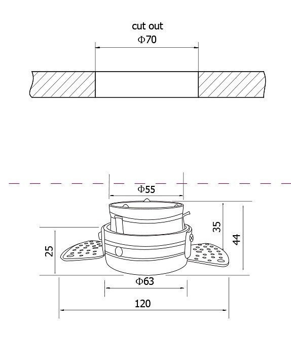 Диаметр врезного отверстия, мм55