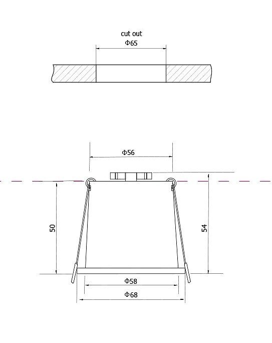 Диаметр врезного отверстия, мм56