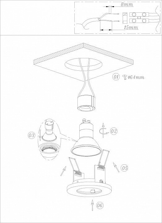 Тип установки светильникавстраиваемый