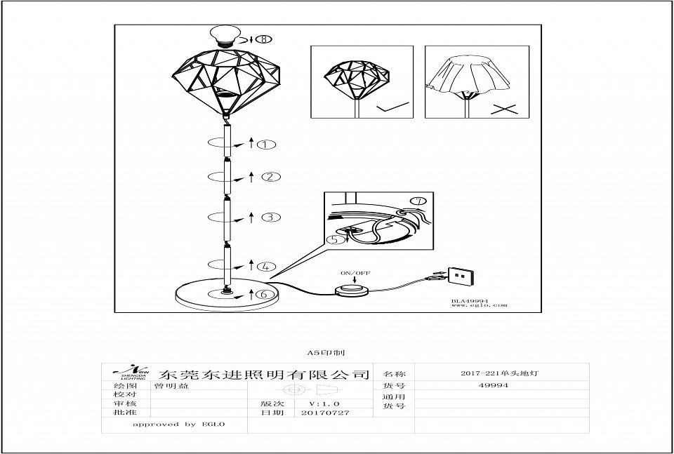 Наличие выключателя, диммера или пульта ДУвыключатель ножной, выключатель