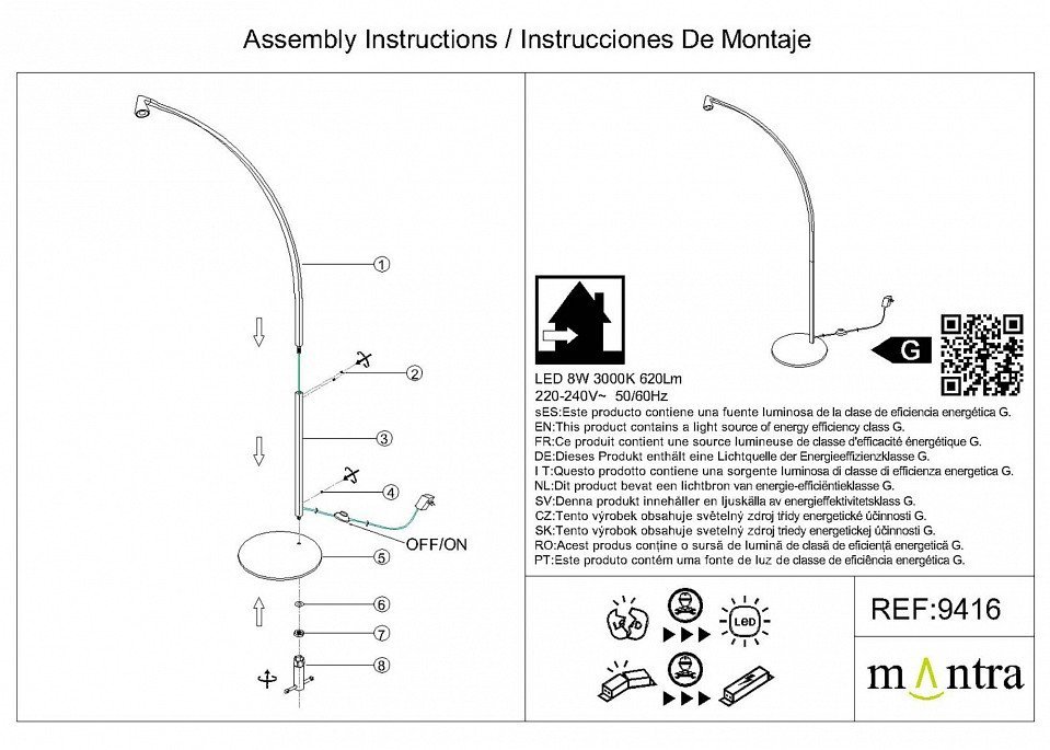 Максимальная мощность лампы, W8