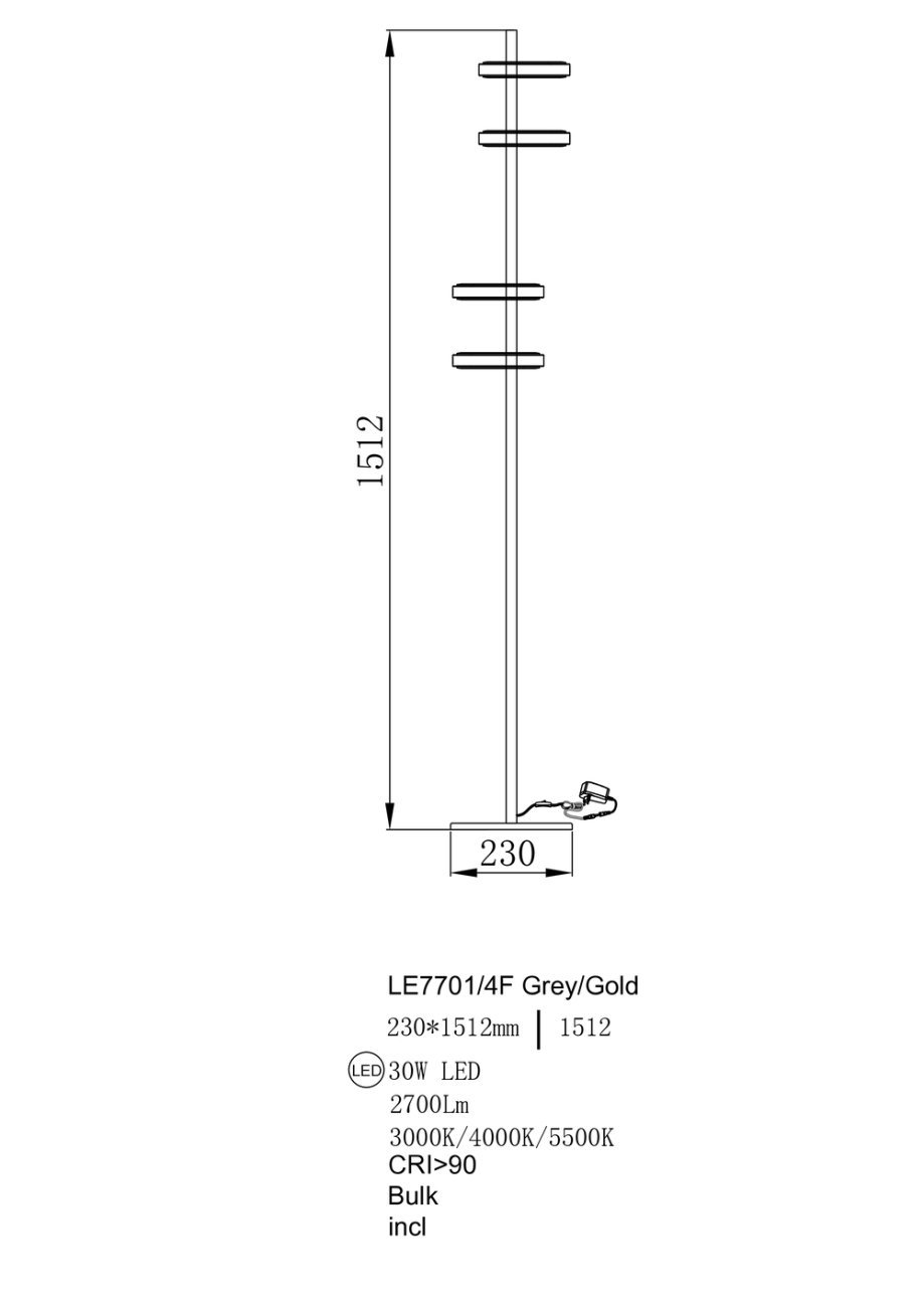 Торшер Theona LE7701/4F Grey/Gold