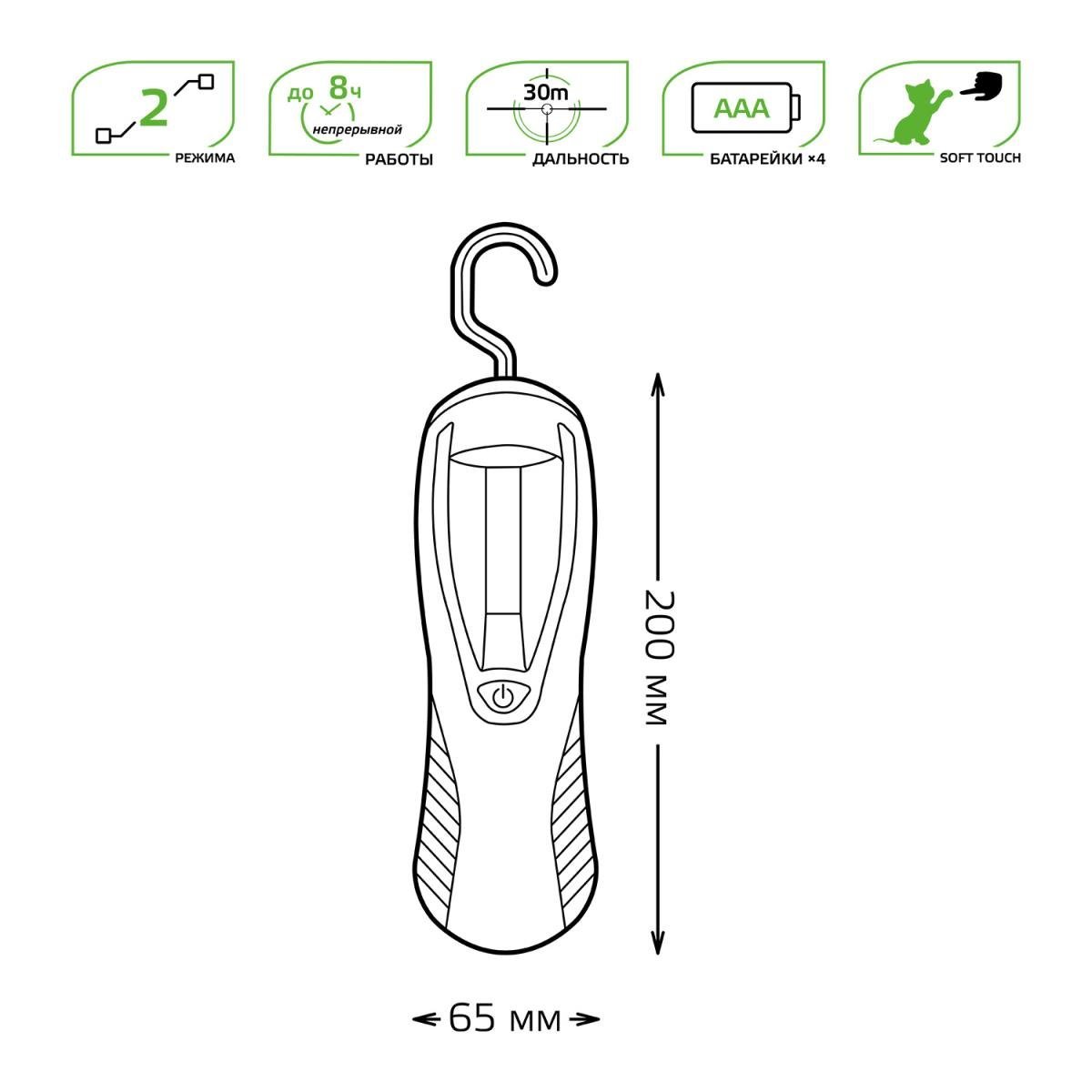 Рабочий светодиодный фонарь Gauss от батареек 200х65 210 лм GF504