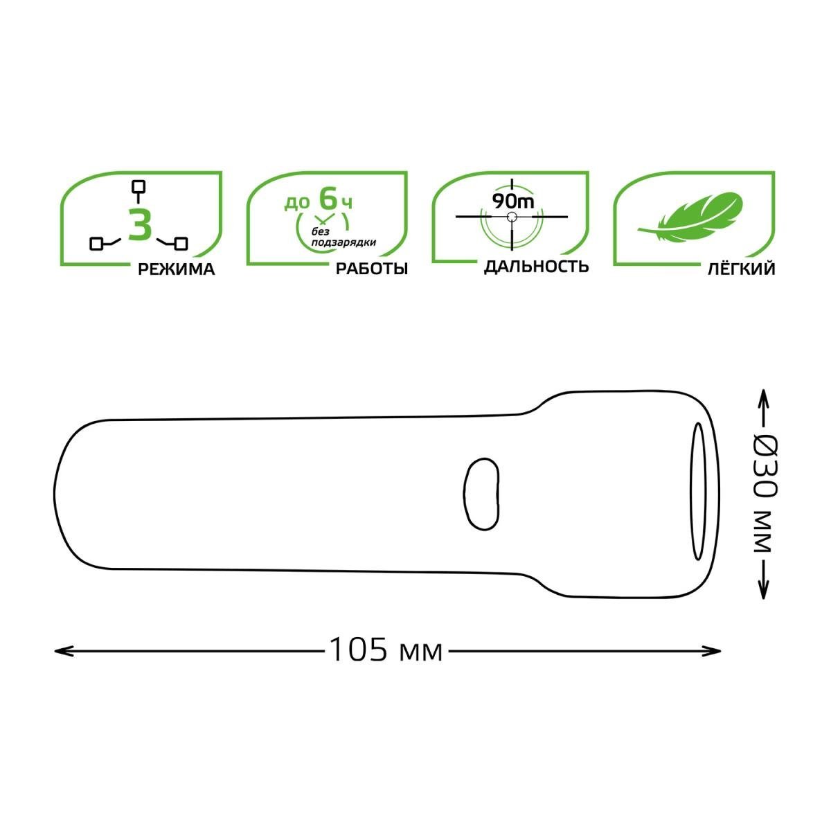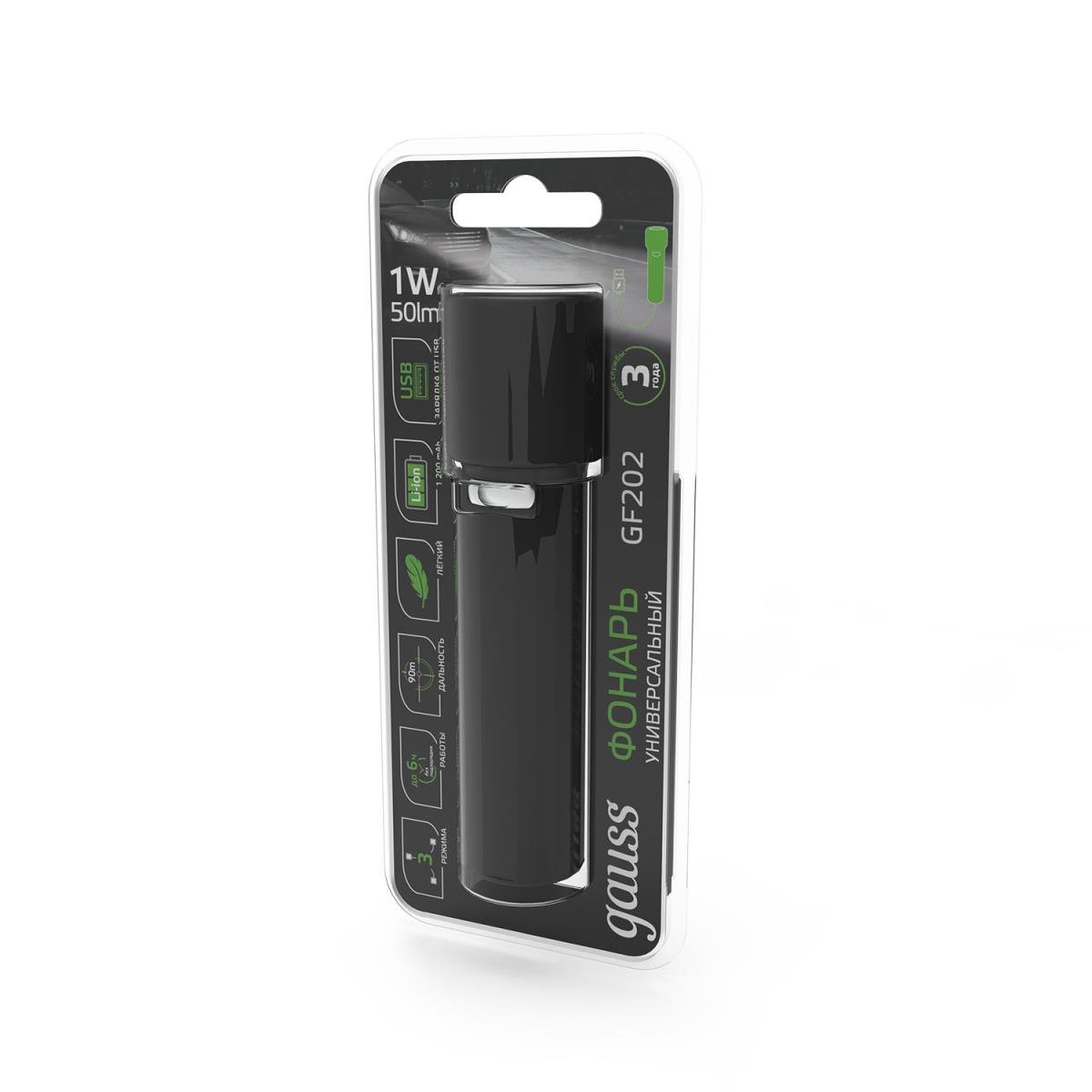 Станьте первым, кто оставит отзыв о товаре Ручной светодиодный фонарь Gauss аккумуляторный 105х30 50 лм GF202