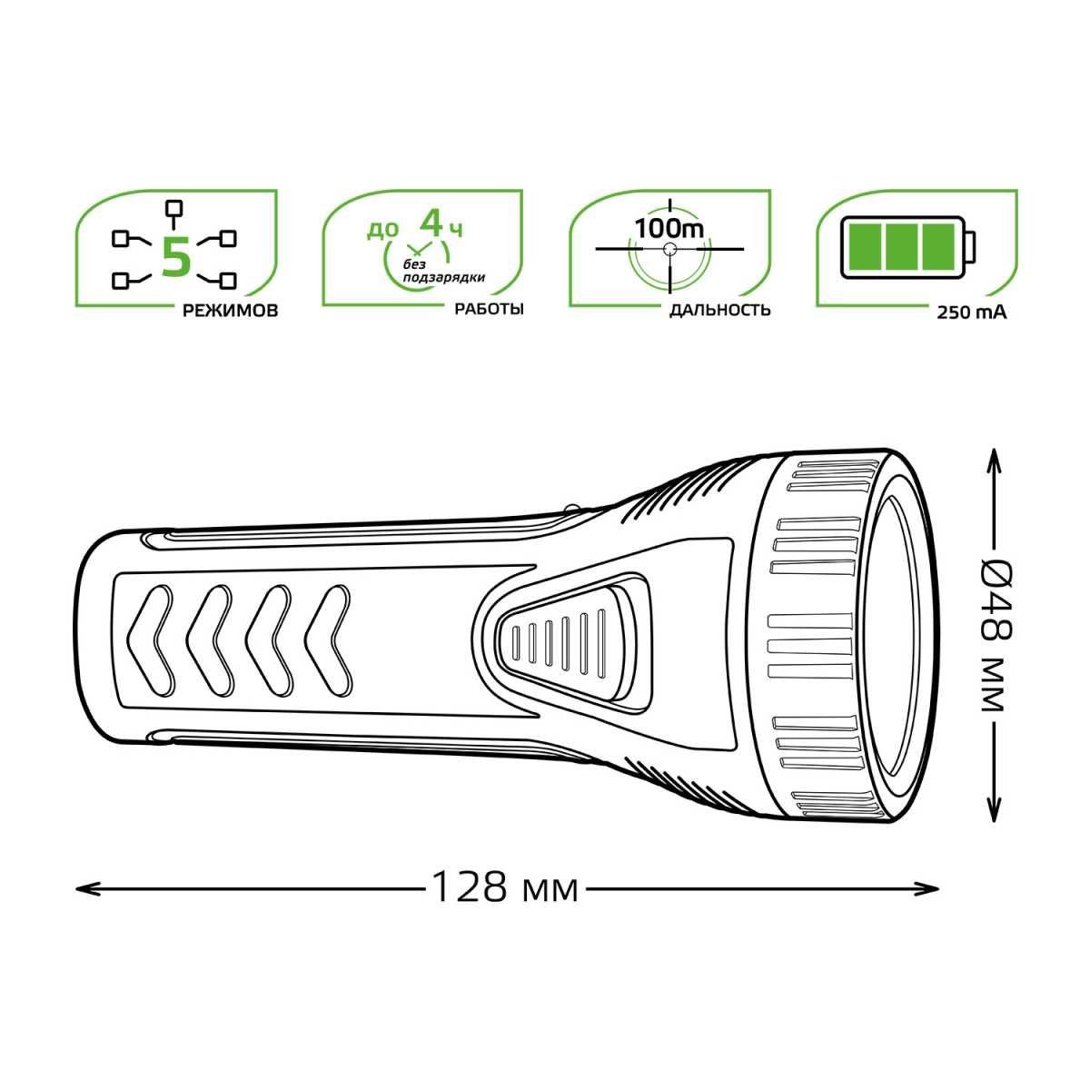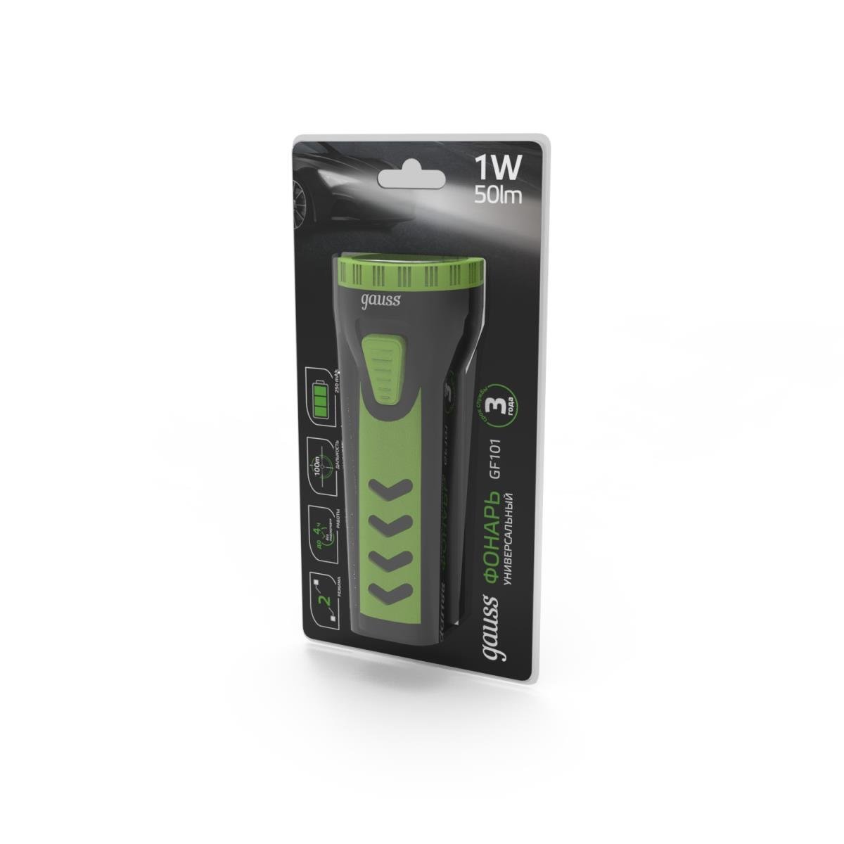 Ручной светодиодный фонарь Gauss аккумуляторный 128х48 50 лм GF101