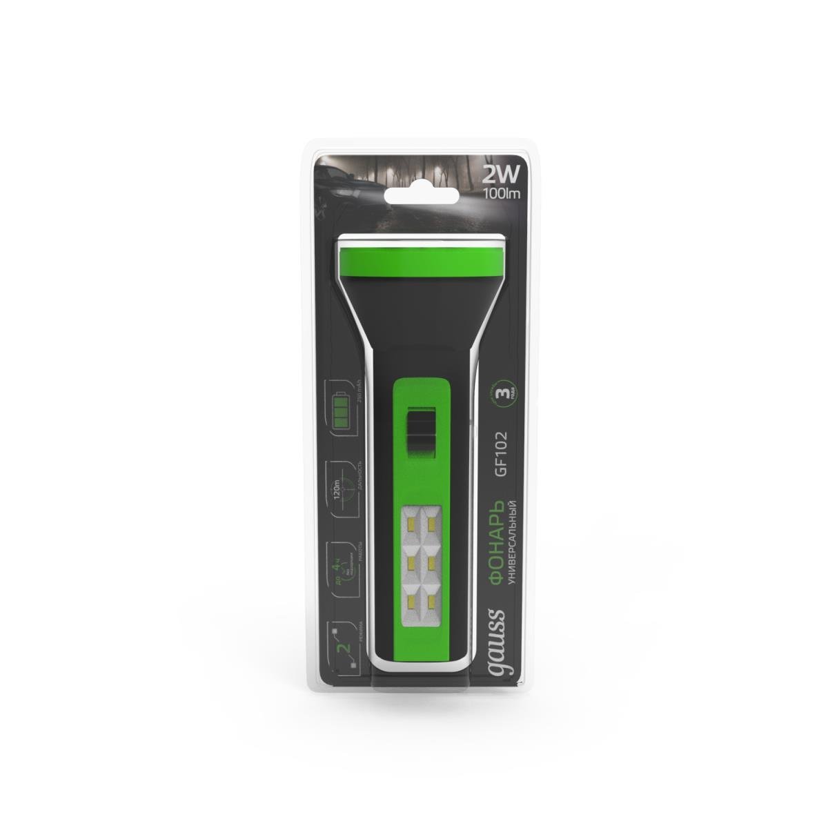 Ручной светодиодный фонарь Gauss аккумуляторный 157х58 100 лм GF102