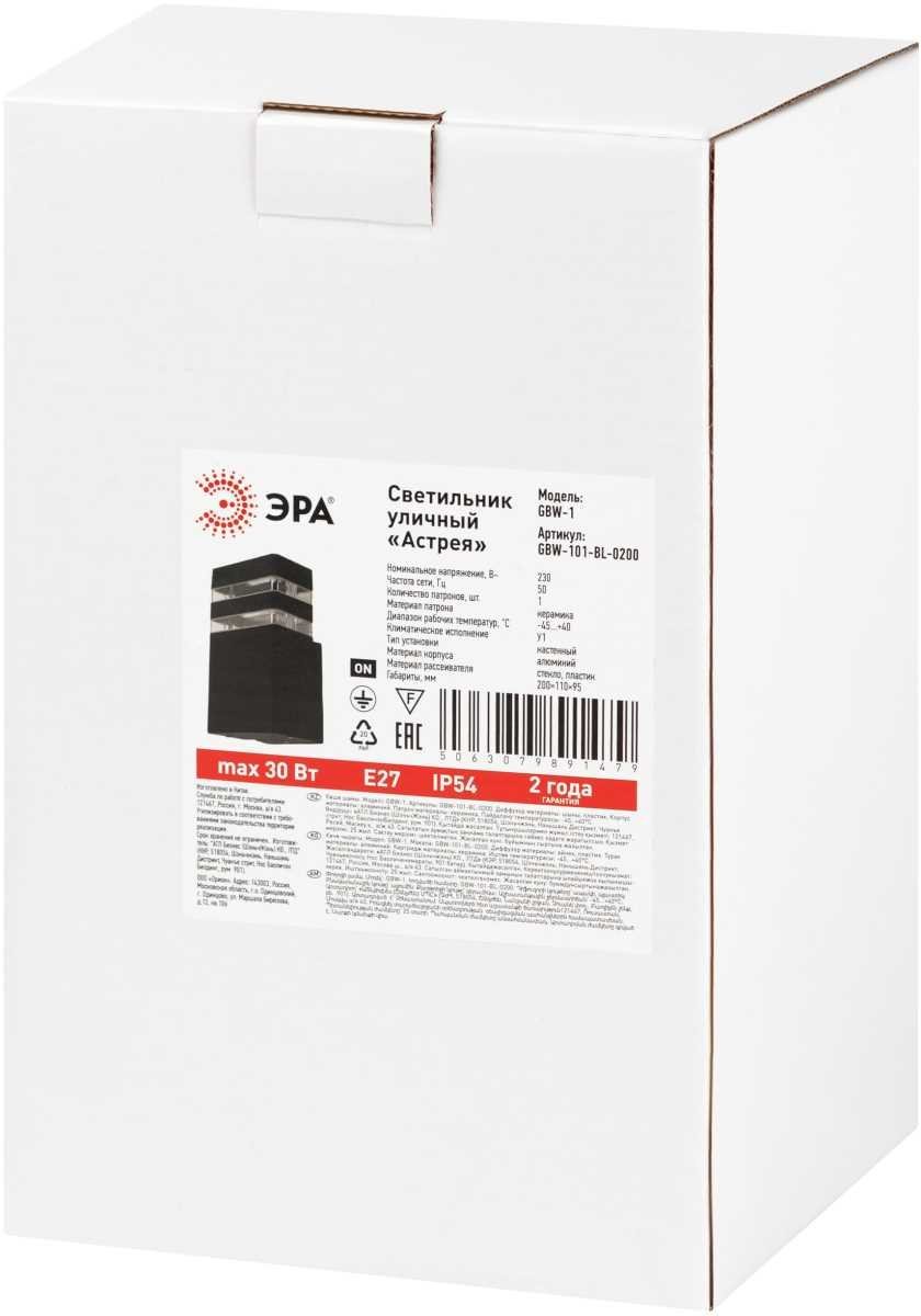 Светильник уличный настенный ЭРА «Астрея» GBW-101-BL-0200 230В 1хЕ27 IP54 вверх черный Б0069590