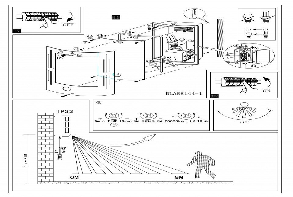 Станьте первым, кто оставит отзыв о товаре Светильник уличный с датчиком Eglo City 88144
