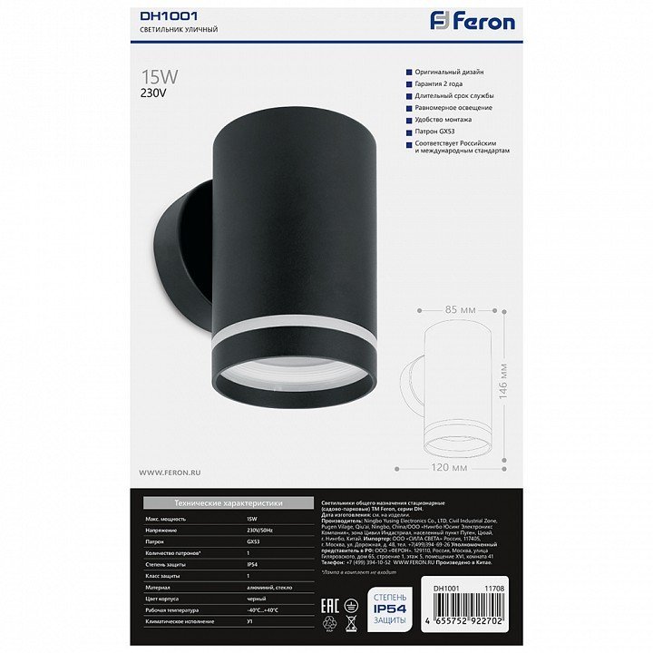 Станьте первым, кто оставит отзыв о товаре Уличный настенный светильник Feron Рио DH1001 11708