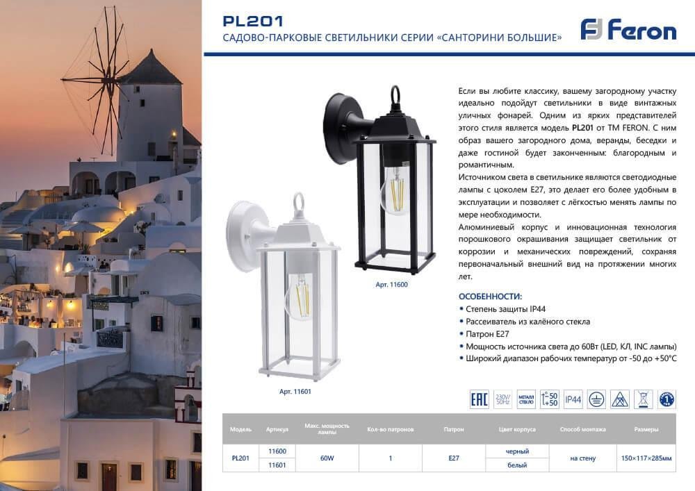 Станьте первым, кто оставит отзыв о товаре Уличный настенный светильник Feron Санторини PL201 11600