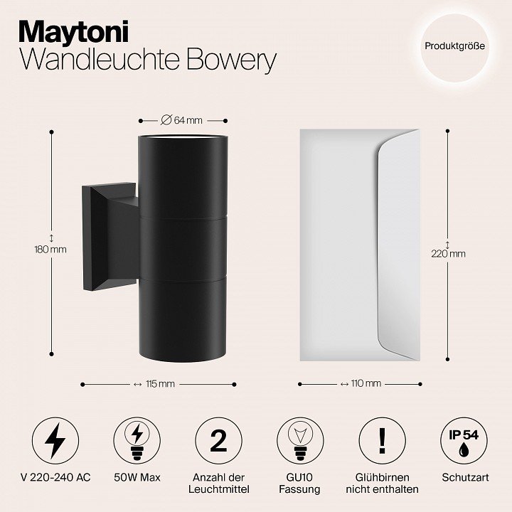 Станьте первым, кто оставит отзыв о товаре Уличный настенный светильник Maytoni Bowery O574WL-02B