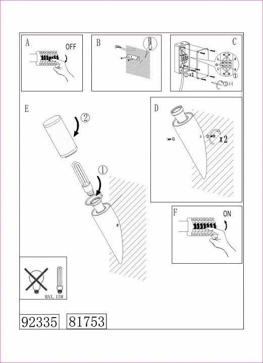 Максимальная мощность лампы, W15