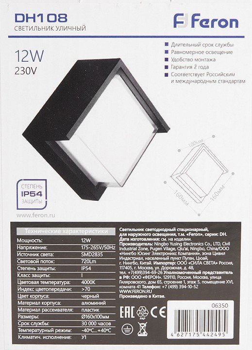 Станьте первым, кто оставит отзыв о товаре Уличный настенный светодиодный светильник Feron Мельбурн DH108 06350